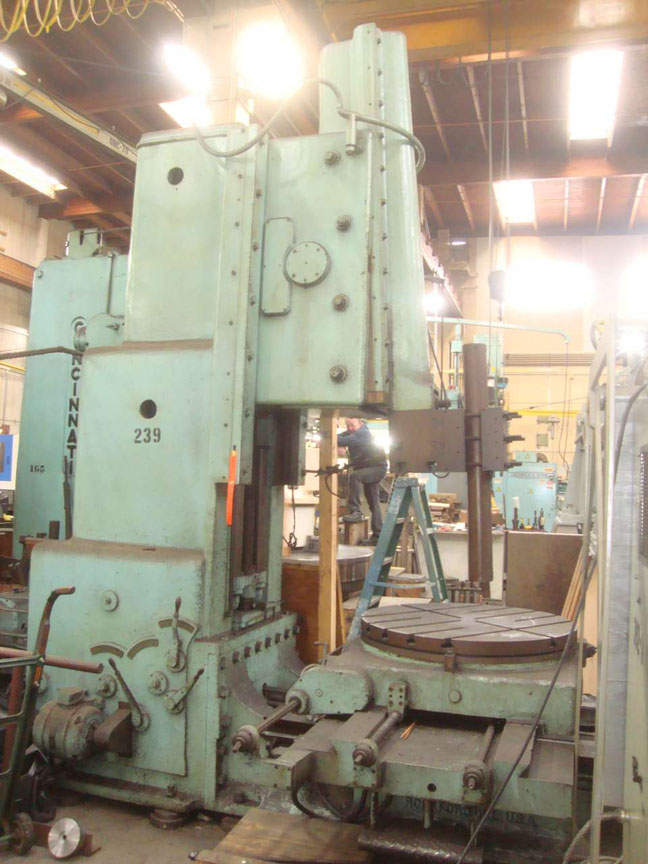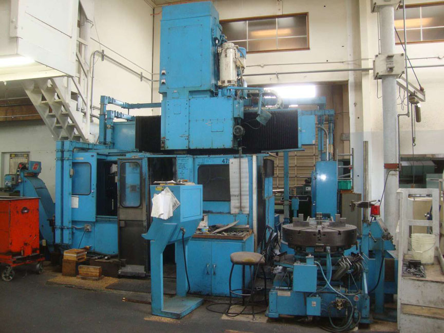 • Giddings & Lewis 36 CNC Vertical Boring Mill, Live Milling, Pallet Changer, 38” Diameter Table, 37” Under Rail, 30-Station Auto. Tool Changer, 25 HP Spindle Motor, #50 Taper, Table Speeds 5-600 RPM, Live Spindle Speeds 15-2200 RPM, Pallet Shuttle, Fixed Rail, Risers, Chip Conveyor, G&L 8000 CNC Control, S/N 511-0142-90